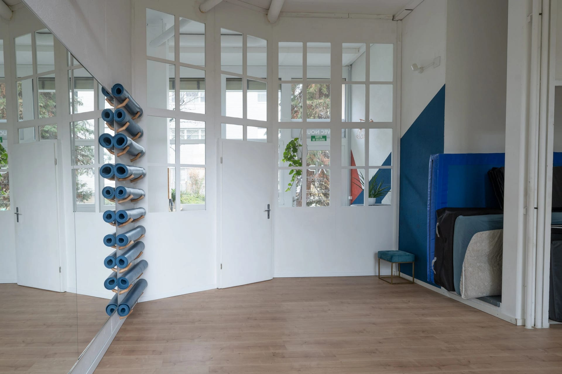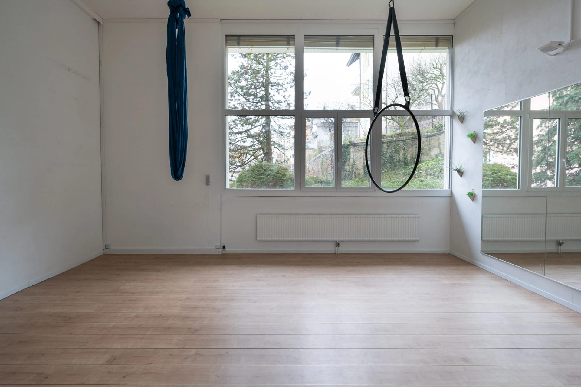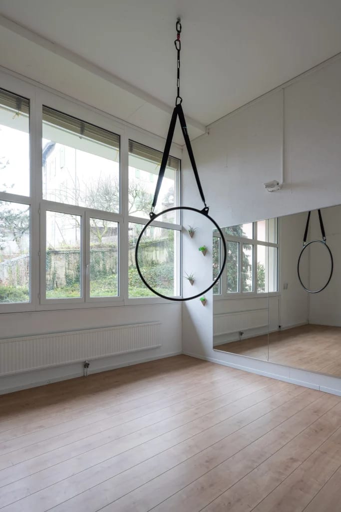 La seconde salle, plus petite mais très chaleureuse, est dédiée aux disciplines aériennes (tissu, hamac, cerceau). Elle est aussi utilisée comme espace « Garderie ».